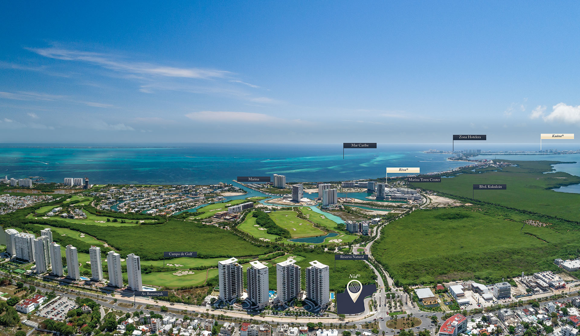 SE PARTE DE NID PUERTO CANCUNUna comunidad que ofrece un estilo de vida único con diferentes distritos rodeados de playa, marina, campo de golf, aldea deportiva, boutiques, restaurantes, cines y entretenimiento.